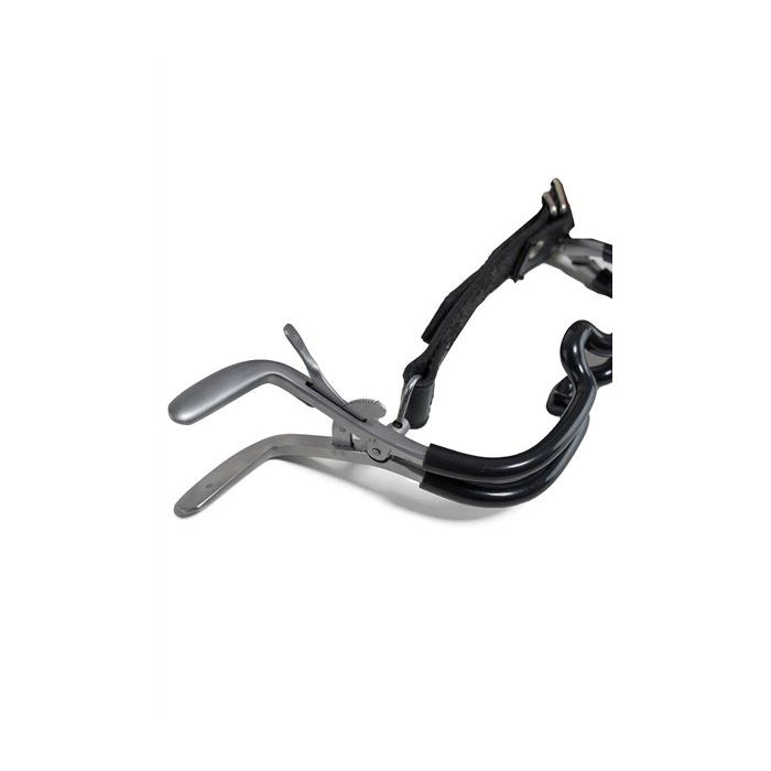 De Bondage Mond Klem Jennings Clamp van Mister B is een traditioneel item van de tandarts om de kaak te openen en te vergrendelen. Het mondstuk is gecoat met latex waardoor hij erg hygiënisch is en voor de bescherming van de tanden. Dankzij de verstelbare leren hoofdband kan hij worden aangepast aan elke hoofdmaat.