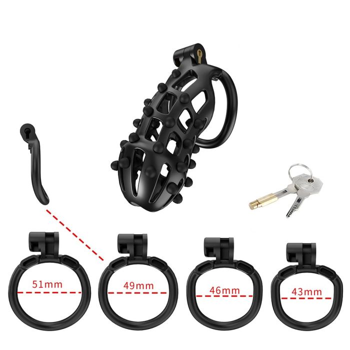 De CELLMATE FlexiSpike-kuisheidskooi is een hoogwaardig kuisheidsapparaat voor mannen dat ultieme controle biedt in een discreet en douchevriendelijk ontwerp. Gemaakt van hoogwaardige kunststof en met de hand afgewerkt, garandeert deze kooi een ontsnappingsvrije ervaring dankzij de vier ergonomisch gevormde cockringen die zorgen voor een perfecte pasvorm. Je kunt kiezen tussen verschillende diameters, namelijk 43 mm, 46 mm, 49 mm en 55 mm, om de beste pasvorm te vinden.