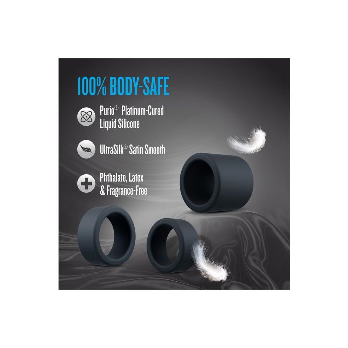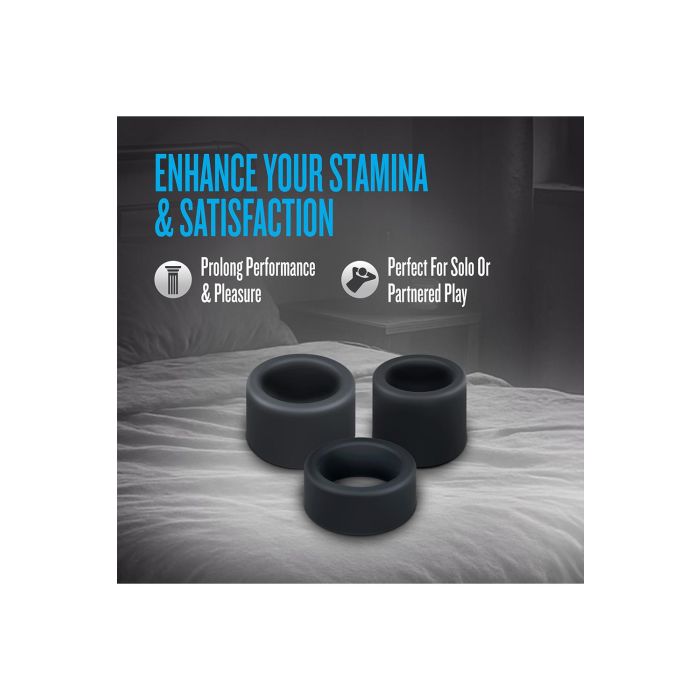 Gemaakt van Purio® platina-uitgeharde vloeibare siliconen, zijn de Accelerate ringen niet alleen duurzaam, maar ook ongelooflijk comfortabel. De UltraSilk® satijnen afwerking voelt luxe aan op de huid, waardoor je je volledig kunt concentreren op het plezier zonder afleiding. Dankzij het super stretchy ontwerp passen de ringen zich aan de meeste maten aan, wat zorgt voor een perfecte pasvorm zonder ongemak. Neem de controle in handen en blijf in de bestuurdersstoel met de Accelerate set – de ideale keuze voor iedereen die zijn seksuele ervaringen naar een hoger niveau wil tillen! Maak je klaar om je grenzen te verleggen en geniet van een nieuwe dimensie van genot.