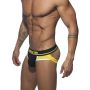 Gemaakt van een blend van 50% katoen, 40% polyamide en 10% elastaan, biedt deze jockstrap een perfecte pasvorm die je de hele dag ondersteunt. Het ademende materiaal zorgt ervoor dat je je fris en comfortabel voelt, ongeacht of je aan het sporten bent, een lange werkdag hebt of gewoon thuis ontspant. De zijpanelen van netstof voegen niet alleen extra ventilatie toe, maar geven ook een speelse en trendy uitstraling die je zelfvertrouwen een flinke boost geeft.