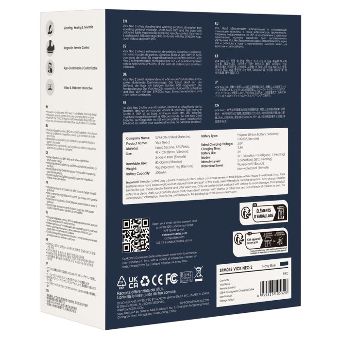 De Vick Neo 2 biedt een verwarmingsfunctie die het speeltje snel opwarmt tot een aangename lichaamstemperatuur, zodat je direct kunt genieten van een comfortabele ervaring. Met vijf rustige vibratiestanden, elk met vijf intensiteiten, vind je altijd de perfecte setting voor jouw behoeften. De SVAKOM Intelligent modus bootst een echt seksritme na, wat zorgt voor een extra dimensie aan je spel. Dankzij de geheugenfunctie onthoudt het speeltje de laatst gebruikte vibratiestand, zodat je altijd snel weer kunt genieten. Met de SVAKOM app kun je de vibraties aanpassen, op afstand spelen en zelfs communiceren met je partner. Bovendien maakt de FeelConnect 3 app het mogelijk om interactieve video's te synchroniseren en live webcamshows uit te zenden. Het verlichte LED-display op de basis van het speeltje voegt een visueel element toe aan je ervaring, terwijl de praktische knopvergrendeling zorgt voor discreet transport en opbergen.