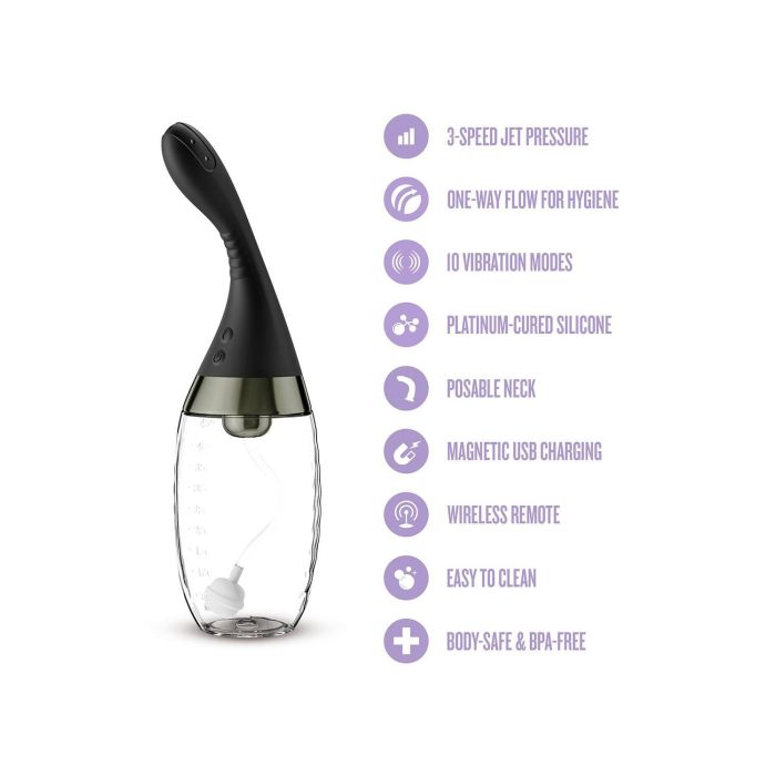 Dit apparaat is uitgerust met een aanpasbaar 3-snelheden jetsysteem en 5 precisie spuiten, zodat je de spoeling volledig kunt afstemmen op jouw persoonlijke voorkeuren. Het slimme ontwerp met eenrichtingsstroom voorkomt terugstroom, wat betekent dat je altijd kunt rekenen op een schone en frisse ervaring. Met maar liefst 10 krachtige vibratiemodi helpt de Aqua Jet je niet alleen te ontspannen, maar zorgt hij ook voor een grondigere reiniging. De ergonomische nek is buigzaam en past zich moeiteloos aan jouw bewegingen aan, waardoor je altijd de perfecte positie vindt voor ultiem comfort.