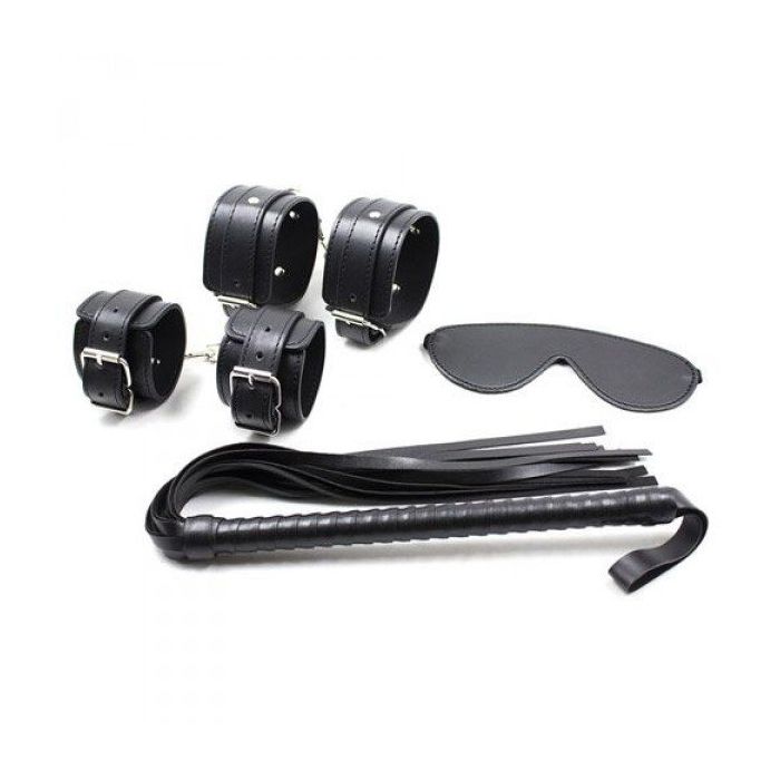 - Inclusief enkel- en handboeien, zweep en blinddoek