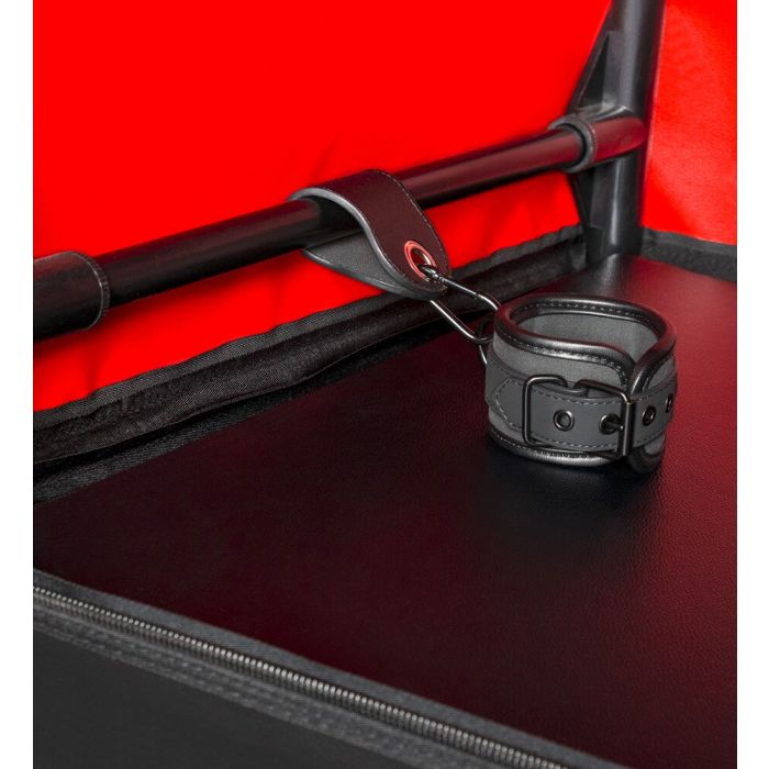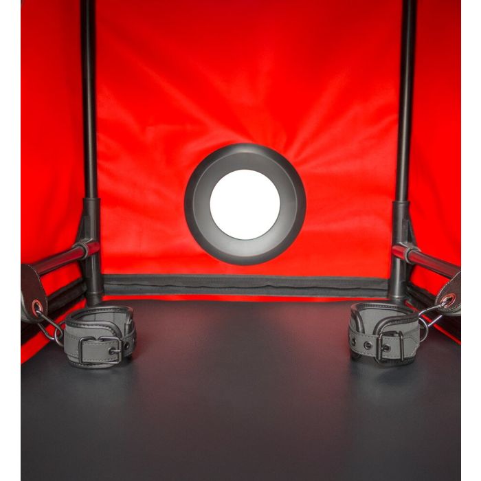 Ontdek de ultieme speelervaring met onze innovatieve cabine, ontworpen voor fantasierijke spelletjes die je zintuigen prikkelen! Met het slimme buisvormige insteeksysteem zet je de cabine in een handomdraai op, zodat je binnen enkele minuten kunt beginnen met je avontuur. De twee ruime openingen aan de zijkanten bieden gemakkelijke toegang, terwijl de ritsopening voor je hoofd en de brede, verstelbare nekkraag zorgen voor extra comfort. Stap moeiteloos in en uit via de handige ritsdeur. Geniet van de sfeervolle LED-verlichting en de zachte vloermat die een comfortabele speelomgeving creëren. De bijgeleverde handboeien zijn eenvoudig te gebruiken en aan te passen met gespen, zodat je je fantasieën helemaal kunt uitleven. Alles wordt geleverd in een praktische opbergtas, inclusief de gedemonteerde cabine, vloermat, handboeien en een LED-lamp. Maak je klaar voor een avontuur dat je fantasieën tot leven brengt!
