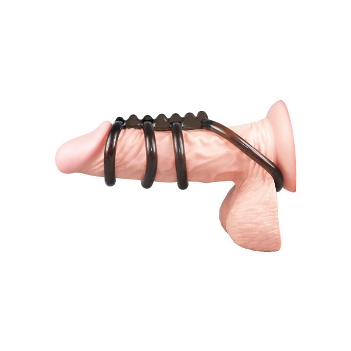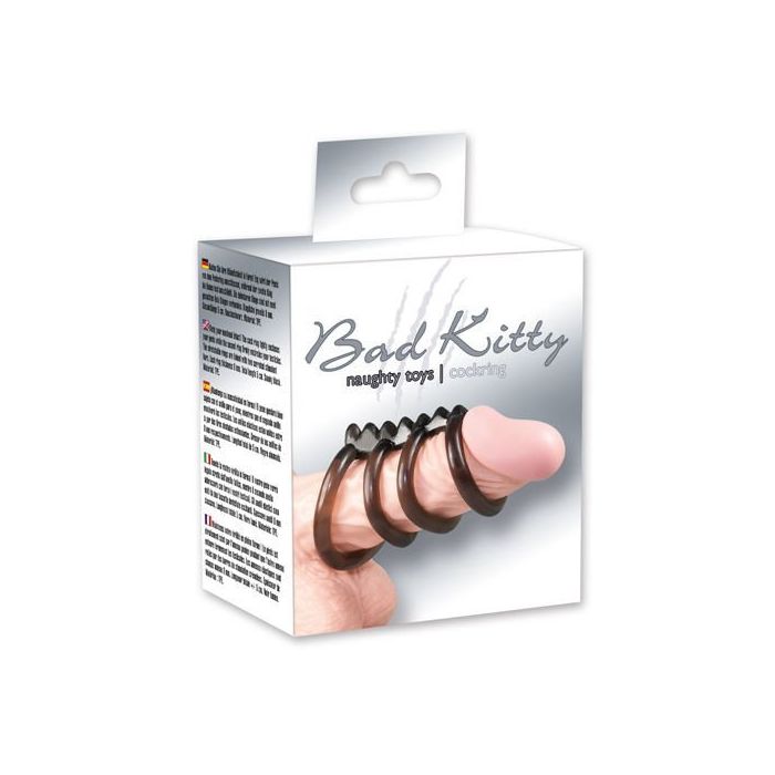 Deze bijzondere cockring van het merk Bad Kitty beschikt over vier rubberen ringen die ervoor zorgen dat het bloed op de juiste plek blijft zitten waardoor je kan genieten van een hardere en langdurige erectie. De achterste ring kan bijvoorbeeld ook achter de balzak geplaatst worden. De cockring is gemaakt van buigzaam TPE materiaal en is voorzien van stimulerende knobbeltjes waarmee jij je partner extra kunt stimuleren.