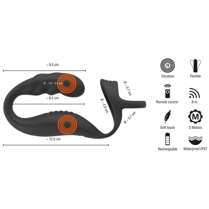Dit innovatieve ontwerp stelt je in staat om je volledig te concentreren op de opwindende sensaties die de krachtige vibrators bieden. Met maar liefst 10 verschillende vibratiestanden per motor, die je afzonderlijk kunt bedienen, heb je de vrijheid om de intensiteit helemaal af te stemmen op jouw persoonlijke voorkeuren. Of je nu alleen speelt of samen met een partner, de handige afstandsbediening met een bereik van 8 meter geeft je de controle.