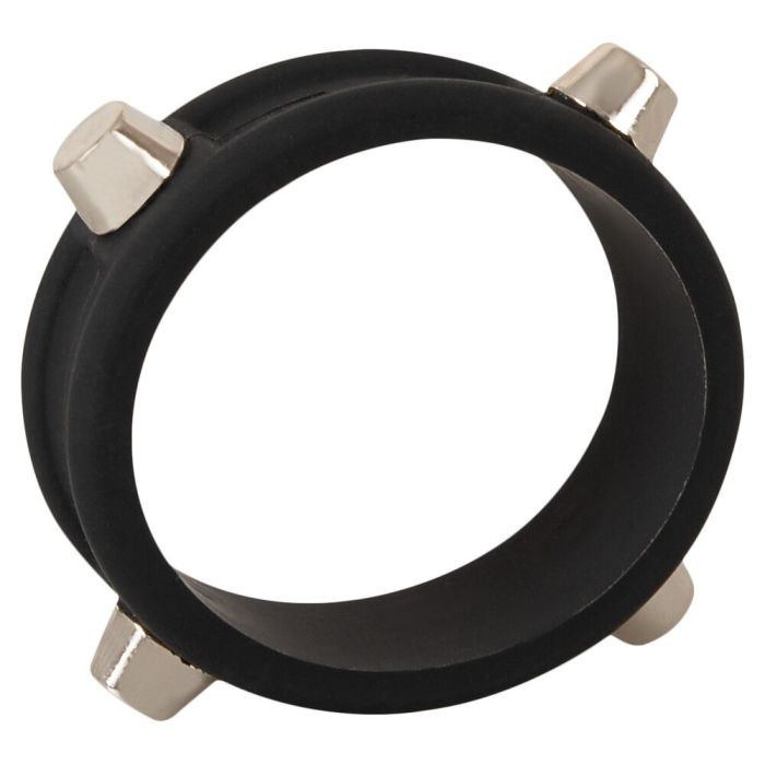 Gemaakt van zijdezachte siliconen, biedt deze cockring niet alleen een comfortabele pasvorm, maar ook een luxe uitstraling die je zelfvertrouwen een boost geeft. De metalen studs voegen een stoer accent toe, waardoor deze ring niet alleen een praktisch hulpmiddel is, maar ook een aantrekkelijk accessoire dat je met trots kunt dragen.