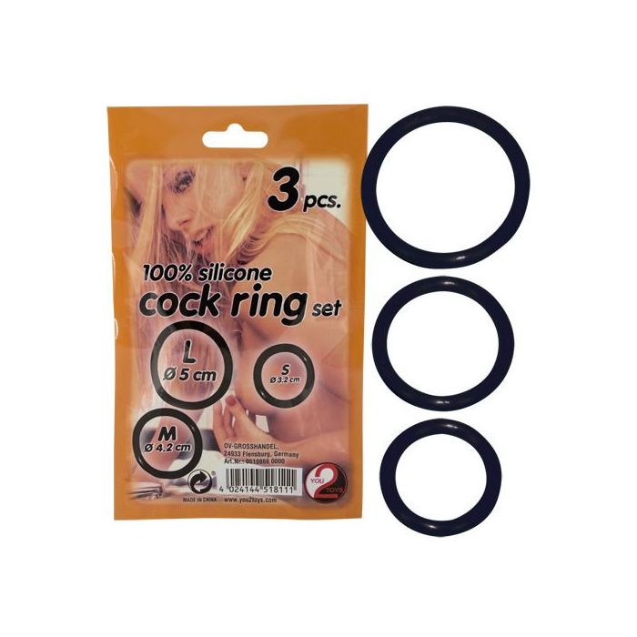 Cockring Set - Trio is een set van drie verschillende cockringen. De ringen zijn gemaakt van rekbaar siliconen en hebben allemaal een eigen afmeting. Zo kan je precies uittesten welke cockring het beste bij jou zal passen. Geniet vanaf nu van langdurige erectie en het uitstellen van je orgasme! Seks hebben zal nooit meer hetzelfde zijn met deze ringen van You2Toys!