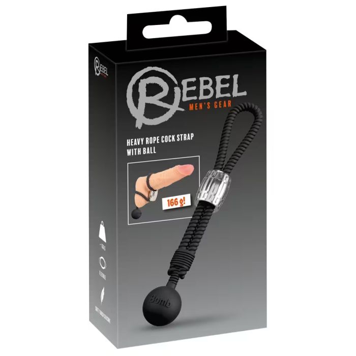 Rebel Cockstrap Met Bal Heavy Rope - Zwart