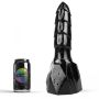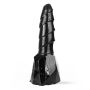 De ribbels over de schacht geven extra prikkeling bij iedere beweging, waardoor elke stoot nog intenser wordt. De grote vlakke basis zorgt ervoor dat je hem veilig en stabiel kunt gebruiken, ook in combinatie met een harnas. Het zwarte PVC geeft hem een stoere, krachtige uitstraling die past bij zijn formaat en karakter.