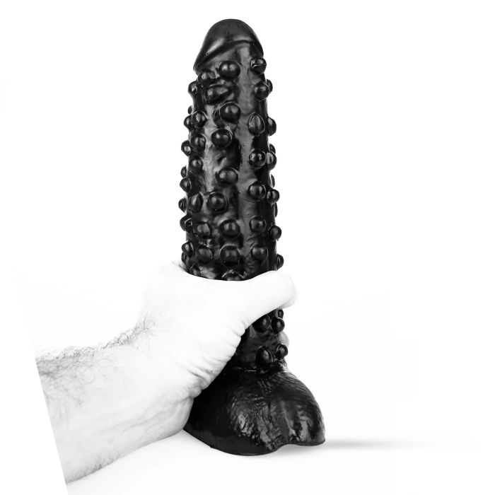 Dark Crystal Zwarte Dildo met Nopjes - 27 cm