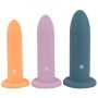 Elke dildo in deze set is vervaardigd uit hoogwaardig, zijdezacht siliconen, wat zorgt voor een moeiteloze inbreng en een ongeëvenaarde soepelheid. De oranje dildo heeft een totale lengte van 18 cm en een diameter van 4,3 cm, perfect voor een eerste uitdaging. De paarse dildo, met een lengte van 19,2 cm en een diameter van 4,9 cm, biedt een spannende upgrade, terwijl de blauwe dildo, de grootste van de drie, met een indrukwekkende lengte van 20 cm en een diameter van 5,7 cm, je echt uitdaagt om verder te gaan. Dankzij hun stevige maar flexibele ontwerp passen ze zich perfect aan jouw lichaam aan, wat zorgt voor een comfortabele en plezierige ervaring.