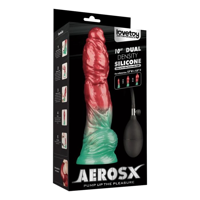 Dual Density Opblaasbare Dildo 25 cm - Rood/Groen