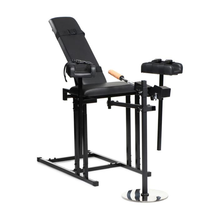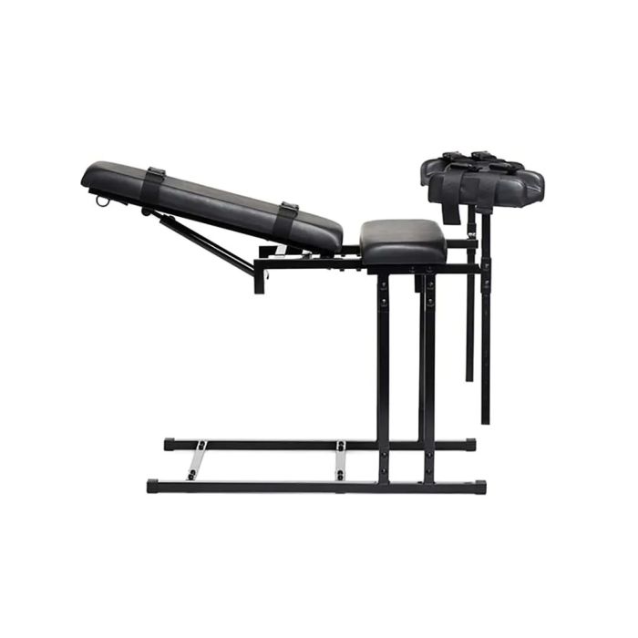 De Extreme Obedience Chair is de verstelbare bondagestoel die jouw fantasieën naar nieuwe hoogten tilt. Met een robuust frame dat tot 199 kg kan dragen, biedt deze stoel de stabiliteit die je nodig hebt om je avonturen te verkennen. De verstelbare rugleuning en beenhoogte maken het mogelijk om elke hoek en positie te verkennen, of je nu jezelf of je partner in de perfecte houding wilt plaatsen. Laat je partner rechtop zitten voor een spannende observatie van genot en pijn, of laat ze achterover leunen voor een ontspannen ervaring, waarbij hun lichaam klaar is voor plagerijen en sensuele spelletjes.