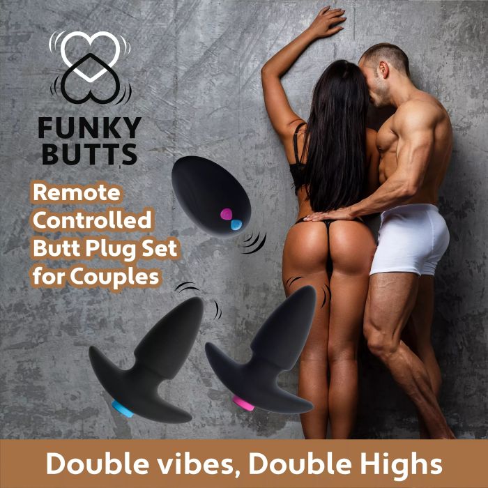 De FunkyButts Buttplugset van FeelzToys is speciaal ontworpen voor koppels die hun intieme momenten willen verrijken. Deze duo-set bevat twee vibrerende buttplugs die perfect zijn om samen te dragen, waardoor jullie passie naar nieuwe hoogten wordt getild. Met de gebruiksvriendelijke draadloze afstandsbediening kunnen jullie de vibraties van beide plugs afzonderlijk bedienen, wat zorgt voor eindeloze mogelijkheden om elkaar te plagen en te verrassen. Kies uit maar liefst 10 verschillende vibratiestanden, variërend van zacht en sensueel tot intens en opwindend, zodat je altijd de juiste sfeer kunt creëren. En omdat ze fluisterstil zijn, kunnen jullie deze spannende ervaring zelfs discreet in het openbaar delen, wat het extra spannend maakt.