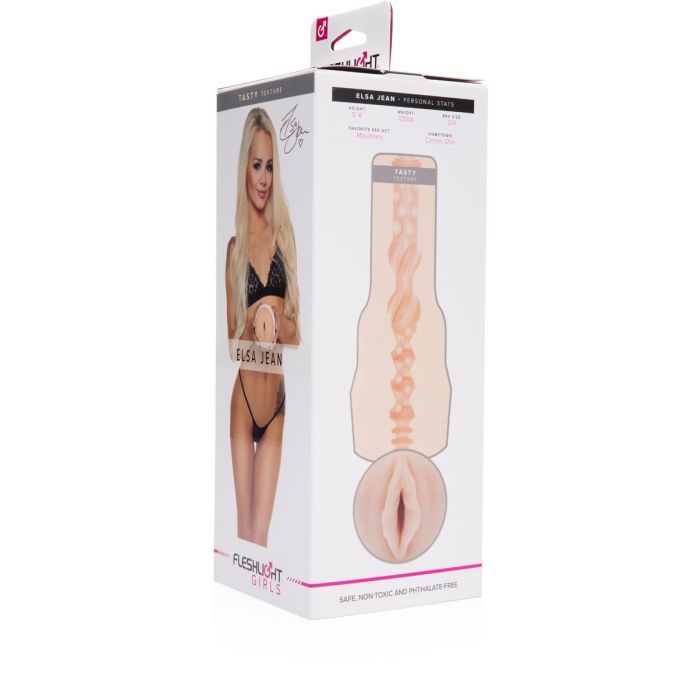 Met de Elsa Jean Tasty Fleshlight heb je de bekende blonde pornoster voortaan binnen handbereik. De 1-op-1 nagebootste vagina voelt heerlijk zacht en omsluit jouw penis op realistische wijze. De geribbelde en genopte binnenkant zorgt voor optimale stimulatie, terwijl het bodysafe TPE-materiaal zorgt voor een comfortabel gevoel. De sleeve is uitneembaar en eenvoudig schoon te maken, waardoor deze masturbator perfect is voor gebruik in bad of onder de douche.