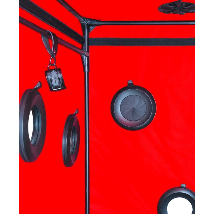 De Scandale BDSM cabine van Secret Dome is speciaal ontworpen voor de fijnproevers van spannende en duistere fantasieën! Deze unieke gesloten cabine creëert een veilige en intieme omgeving waarin je jouw verlangens kunt verkennen, perfect voor het spelen van glory hole games en meeslepende rollenspellen. Met een stevig buisvormig insteeksysteem en een robuust, ondoorzichtig dekzeil is de cabine in een handomdraai opgezet en klaar voor gebruik. De opening voor het hoofd is voorzien van een handige rits en een brede, verstelbare nekkraag voor optimaal comfort. Geniet van de volledige controle over je speelruimte met maar liefst 9 grote openingen (3 per kant) die volledig kunnen worden afgesloten met panelen. De zijkant is uitgerust met een ritsdeur voor gemakkelijke toegang, terwijl 2 ventilatoren en sfeervolle LED-verlichting zorgen voor een aangename ventilatie en een mysterieuze ambiance in de anders volledig donkere cabine. Voor extra comfort is er een zachte vloermat aanwezig en de bijgeleverde handboeien en enkelboeien kunnen eenvoudig binnenin worden geplaatst en snel worden omgedaan en versteld met gespen. Alles wordt geleverd in een praktische opbergtas, zodat je je nieuwe speeltje gemakkelijk kunt meenemen en opbergen. Laat je fantasieën de vrije loop en beleef onvergetelijke momenten met de Scandale BDSM cabine!
