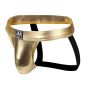 Gemaakt van een luxe mix van PU en polyester, biedt deze jockstrap een comfortabele pasvorm die perfect aansluit op je lichaam. De matte afwerking in combinatie met de opvallende gouden kleur zorgt ervoor dat je niet alleen opvalt, maar ook een gedurfde indruk maakt.