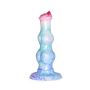 De Kiotos Monstar Dildo Beast 76 is een sensationeel speeltje dat je zintuigen op een ongekende manier prikkelt! Dit indrukwekkende dildo, geïnspireerd op de mythische eenhoorn, heeft een betoverend vierkleurig effect dat je fantasie tot leven brengt. Met een royale lengte van 26 cm en een diameter die varieert van 5 cm tot 7,4 cm, biedt deze dildo een unieke ervaring die perfect is voor zowel vaginale als anale stimulatie. Gemaakt van hoogwaardig, lichaamsveilig medisch silicone, voelt het niet alleen geweldig aan, maar is het ook veilig in gebruik. De prachtige mix van roze, wit, turquoise, blauw en paars zorgt ervoor dat elke dildo uniek is, wat betekent dat je kunt genieten van een klein beetje variatie in de kleuren. Laat je verbeelding de vrije loop en ervaar de opwindende sensaties die de Kiotos Monstar Dildo Beast 76 te bieden heeft – een must-have voor elke avontuurlijke liefhebber!