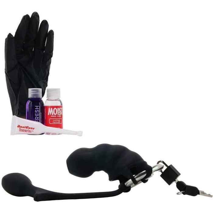 Til je BDSM-spel naar een hoger niveau met de Ass-Gasm Cock Blocker van Anal Fantasy. Deze kuisheidsgordel zorgt ervoor dat je penis geblokkeerd wordt, terwijl de geïntegreerde anaalplug nog steeds voor sensueel plezier kan zorgen onder de controle van je partner. Het meegeleverde slot met sleutels en de prep kit maken het mogelijk om direct aan de slag te gaan. Gemaakt van zacht, veilig siliconenmateriaal, is de kuisheidsgordel comfortabel en volledig waterproof, zodat jij je volledig kunt overgeven aan een spannende en gecontroleerde ervaring.