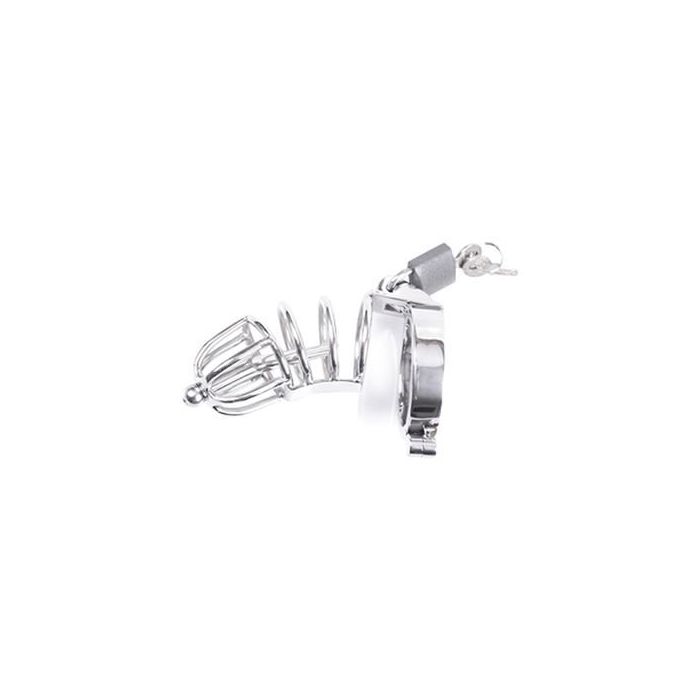 Deze kuisheidskooi is perfect voor mannen met een wat kleinere penis. De kooi kan op slot worden gedaan met een klein hangslot, waardoor de drager volledig afhankelijk is van zijn partner. Aan de peniskooi zit een ring bevestigd die om de penis of ballen gedaan kan worden, waardoor de kooi stevig op zijn plaats blijft zitten. De kooi is verkrijgbaar in twee ringmaten, zodat hij perfect past bij de drager.