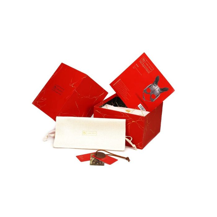 Dit masker van Liebe Seele is vervaardigd uit hoogwaardig rundleer. Dit unieke accessoire is niet alleen een visueel statement, maar biedt ook ongeëvenaard comfort dankzij de zachte lamsleren voering. Het ontwerp, dat twee verschillende kleuren en texturen combineert, is verfraaid met elegante gouden accenten van The Equestrian, waardoor het masker een verfijnde uitstraling krijgt. Met een verstelbare breedte van 44 tot 58 cm is dit masker geschikt voor diverse hoofdmaten, wat zorgt voor een perfecte pasvorm. De Equestrian collectie van Liebe Seele, geïnspireerd door de kunst van het paardrijden, belichaamt een harmonieuze mix van functionaliteit en elegantie, met stevige materialen en robuuste metalen details. Dit masker nodigt uit tot een bijzondere ervaring, waarbij thema's als gehoorzaamheid, discipline en karakterisering samenkomen in een betoverende wereld van rollenspel en pony play. Maak een statement en ervaar de magie van de paardenwereld met dit exclusieve masker.