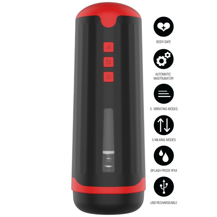 De Milking Master Masturbator van Fusion X by Hidden Desire is een echte gamechanger voor zelfplezier. Dankzij de innovatieve melkbewegingstechnologie ervaar je een realistische en moeiteloze stimulatie die je niet snel zult vergeten. Met vijf verschillende melkstanden en vijf vibratiestanden kun je je ideale combinatie creëren voor elke sessie.