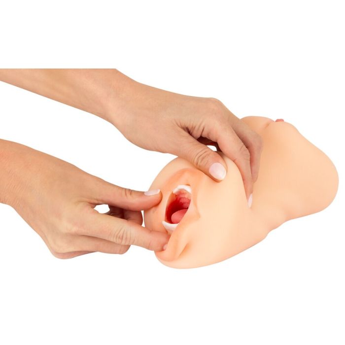 De robuuste Mond, Vagina & Kont Masturbator van Nature Skin biedt maar liefst drie genotsopeningen, zodat je kunt genieten van een scala aan realistische ervaringen. Aan de ene kant vind je een verleidelijke deep throat mond die je meeneemt naar een intense wereld van genot, terwijl de andere kant je verwent met een levensechte vagina en een strakke anus. Gemaakt van een zachte, natuurlijke huid, voelt deze masturbator niet alleen ongelooflijk realistisch aan, maar ziet hij er ook zo uit. Elk detail is met zorg ontworpen, van de sensuele mond met tong tot de delicate vulvalippen en de strakke rozet van de anus. Het elastische, huidachtige materiaal past zich moeiteloos aan, waardoor je kunt genieten van een gevoel dat lijkt op de beste seks. Met een doorlopend genotskanaal dat geschikt is voor elke penislengte en eenvoudig schoon te maken is, biedt deze masturbator een ongeëvenaarde ervaring. Laat je verrassen door de delicate texturen die zorgen voor authentieke stimulatie en geniet van een avontuur dat je niet snel zult vergeten!
