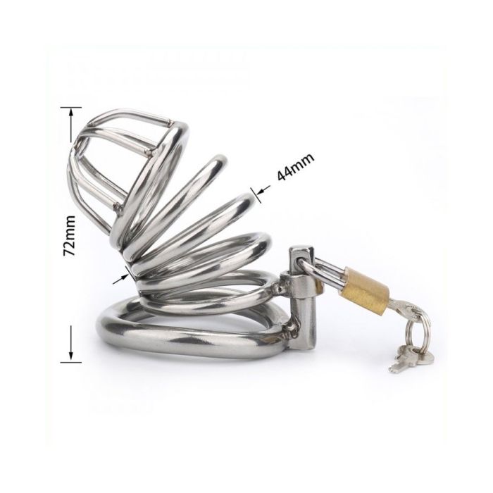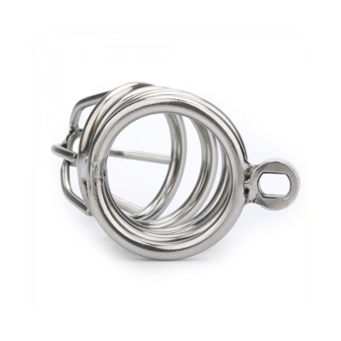 Gemaakt van metaal, deze kuisheidskooi is ontworpen met opeenvolgende ringen die perfect om de penis passen. De meegeleverde ring van 40 mm in diameter biedt een comfortabele, maar effectieve beperking van erecties, waardoor je partner zich nog onderdaniger voelt. Het strakke, glanzende ontwerp voegt niet alleen een sensuele uitstraling toe, maar garandeert ook een veilige en duurzame ervaring die je samen kunt verkennen.