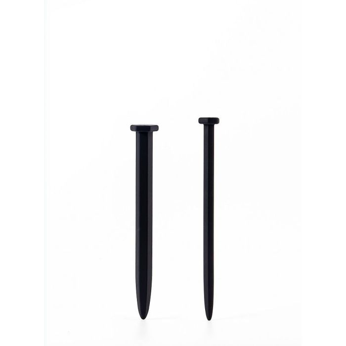 Deze Mister B Fucktools Cock Nails zijn de ultieme accessoires voor bdsm liefhebbers. Geniet van het sensationele gevoel van penetratie van je urinebuis met deze kinky dilators in de vorm van een spijker. Deze penis pluggen zijn ideaal geschikt voor de beginnende gebruiker. De twee siliconen ‘spijkers’ hebben namelijk allebei een ander formaat zodat je het langzaam op kunt bouwen. De dunnere variant heeft een diameter van 0,60 cm en de dikkere dilator heeft een diameter van 1,10 cm. Beiden zijn ze 15,20 cm lang. De vlakke basis zorgt ervoor dat je ze op de juiste plek blijven zitten. Je kunt deze Mister B Cock Nails ook anaal gebruiken. Verleg grenzen en ontdek nieuwe sensaties met deze waterproof en bodysafe dilators van Mister B!
