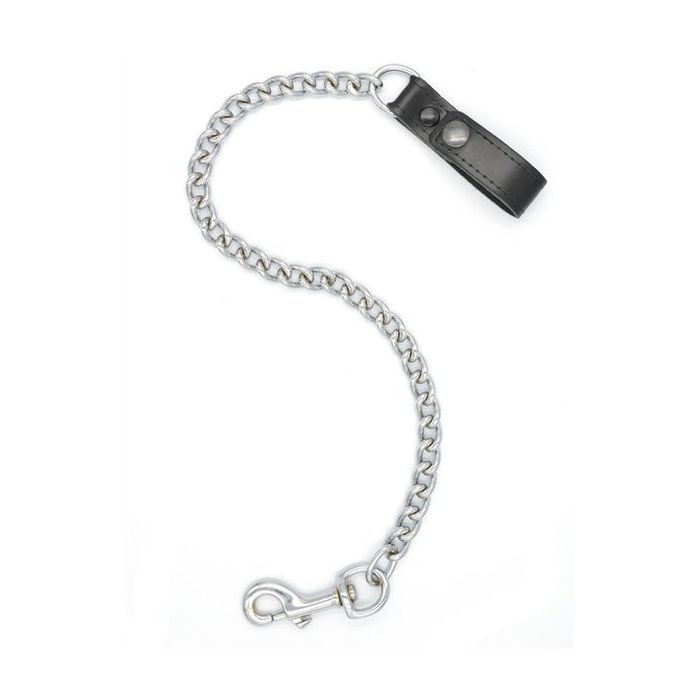 Ben je op zoek naar accessoires om je kinky outfit helemaal mee af te stijlen? Deze Mister B leren lus voor riem met ketting is praktisch en stoer tegelijk! Wanneer je een feestje hebt, wil je natuurlijk niet de hele avond met een tas rondlopen of je outfit laten verstoren door volgepropte zakken. Met deze leren lus voor aan je riem, kun je op handige wijze je sleutels kwijt en maak je je kinky outfit helemaal compleet. De karabijn haak klik je eenvoudig vast aan je riem lus en onderaan de ketting bevestig je eenvoudig je sleutel(s) aan de leren lus met drukknoop. De ketting heeft een lengte van 40 cm waardoor je de leren lus gemakkelijk in je broekzak kunt steken.