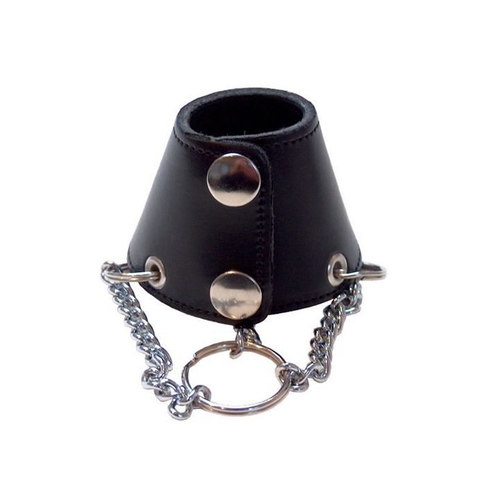 Deze leren parachute met kettingen heeft een super kinky uitstraling en de kwaliteit die je van Mister B gewend bent. Wikkel de parachute om de balzak van je sub en sluit hem door middel van de drukknopen. Je bepaalt hiermee zelf hoe strak dit speeltje zijn balzak moet omsluiten. De parachute is gemaakt van soepel leer en wordt tijdens het dragen nog soepeler. Je kunt de spanning verhogen door aan de bijbehorende ring een gewichtje te bevestigen, zodat de druk op zijn ballen toeneemt. Bouw dit rustig op om tot de gewenste sensatie te komen, of straf hem met een zwaarder gewicht dan hij gewend is. Je kunt de ring ook gebruiken om er zelf aan te trekken. Met deze Mister B leren parachute met kettingen kun je zo genadeloos zijn als je zelf wilt!