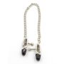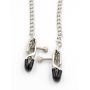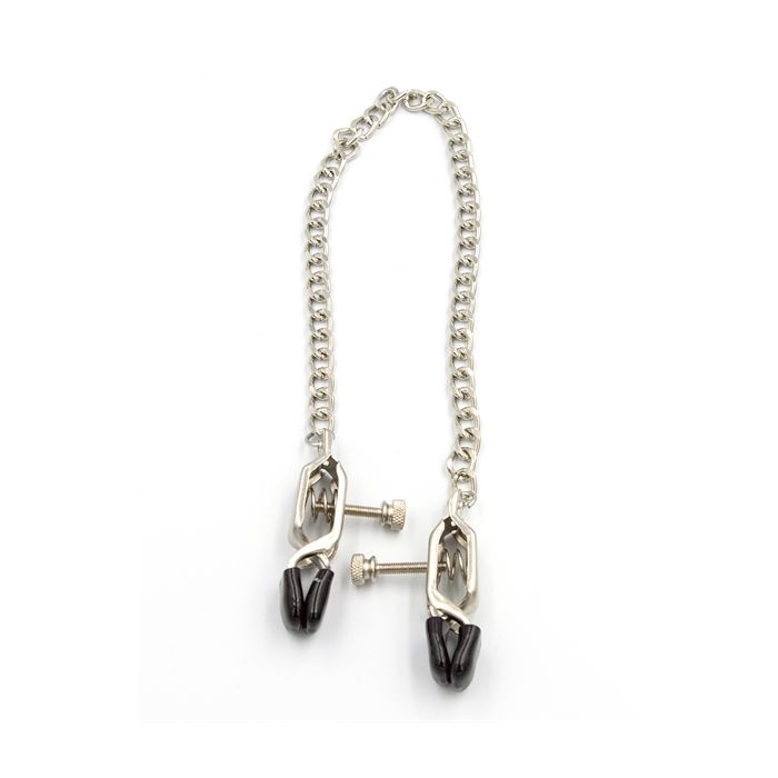 Deze tepelklemmen zijn met elkaar verbonden door de verstelbare stalen ketting. De zachte plastic doppen op de kaken verzachten de klemmen een beetje. Wil je je partner iets meer pijn doen? Trek dan aan de ketting wanneer te accuklemmen op zijn of haar tepels zitten.