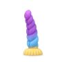 De Monstar Cox MistyCock is een spiraalvormige dildo die je zintuigen op een ongeëvenaarde manier prikkelt. Met zijn prachtige paars-blauwe gradiënt en wervelende ontwerp is deze dildo niet alleen een lust voor het oog, maar biedt hij ook een intense stimulatie. Gemaakt van hoogwaardige, lichaamsveilige siliconen, voelt de MistyCock zijdezacht aan en is hij perfect voor avontuurlijke momenten. De brede, stabiele basis zorgt ervoor dat je deze dildo veilig en handsfree kunt gebruiken, zodat je je volledig kunt overgeven aan de ervaring. Met een totale lengte van 22 cm en een inbrengbare lengte van 19 cm is deze dildo ontworpen om al je fantasieën tot leven te brengen. Vergeet niet om hem voor en na gebruik goed schoon te maken met lauw water en een milde, alcoholvrije toycleaner voor optimale hygiëne. Bereid je voor om je grenzen te verleggen en je diepste verlangens te verkennen met de Monstar Cox MistyCock!