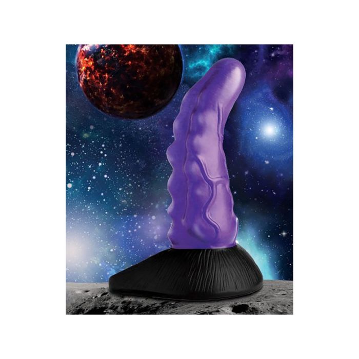 Deze Space Invader is een unieke dildo die speciaal is ontworpen om aan al je fantasieën te voldoen. Met zijn metallic paarse schacht, die lang en breed is, zal deze dildo je zeker laten genieten. De geribbelde en geaderde schacht eindigt in een gebogen punt, perfect voor het stimuleren van de G-spot.