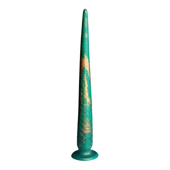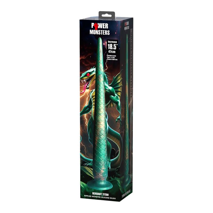 De Monster Dildo Power Monsters Verdant Titan is een mythische creatie die al je stoutste verlangens tot leven brengt. Met een indrukwekkende lengte van 47 cm en een prachtig ontwerp dat schittert met gedetailleerde smaragdgroene schubben en subtiele gouden accenten, is deze dildo niet alleen een lustobject, maar ook een waar kunstwerk dat je slaapkamer transformeert in een fantasierijke speelruimte. De taps toelopende punt zorgt voor een gemakkelijke en comfortabele inbreng, zodat je zonder zorgen kunt genieten van elke sensatie. Dankzij de sterke zuignap kun je deze krachtige dildo stevig verankeren op elke gladde ondergrond, waardoor je vrij kunt experimenteren en je fantasieën kunt verkennen. Dit meesterwerk combineert een gedurfde uitstraling met krachtige functionaliteit, perfect voor degenen die durven te spelen met fantasie en sensatie. Bereid je voor op onvergetelijke avontuurlijke genotservaringen met deze indrukwekkende, fantasierijke en krachtige dildo die je zintuigen zal prikkelen en je naar nieuwe hoogten van genot zal brengen!