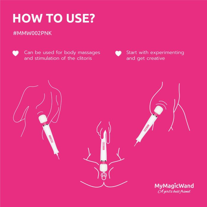 De MyMagicWand is niet alleen krachtig, maar ook ontworpen voor jouw comfort. De top is voorzien van een zachte hoes met padding, waardoor hij heerlijk aanvoelt op de huid. Voor een nog aangenamere ervaring raden we aan om een massagegel of glijmiddel op waterbasis te gebruiken. Met slechts enkele druppels glijdt de kop moeiteloos over je huid, wat zorgt voor een extra dimensie van genot.