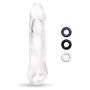 De Penis Sleeve See-Thru Penis Extender van Size Up is de perfecte toevoeging om extra lengte en omtrek aan je penis toe te voegen. Met zijn realistische vorm en gedetailleerde textuur, zorgt deze extender voor een sensueel gevoel dat je fantasieën zal prikkelen tijdens intieme momenten met je partner. Het heldere materiaal van de extender is niet alleen visueel stimulerend, maar de ballus aan het einde zorgt er ook voor dat de extender op zijn plaats blijft voor maximaal comfort en stuwende actie. Om je uithoudingsvermogen te vergroten en je plezier te verhogen, worden er drie ringen meegeleverd die je kunt gebruiken. Met de penis sleeve See-Thru van Size Up kun je jezelf en je partner een onvergetelijke ervaring bezorgen.