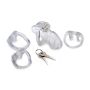 De Clear Captor - Medium is de transparante kuisheidsgkooi die niet alleen de verlangens van je partner beperkt, maar ook een spannend element toevoegt aan jullie intieme momenten. Deze innovatieve kooi is perfect ontworpen om de seksualiteit van je partner te vergrendelen, waardoor ze zich niet kunnen plezieren totdat jij ze bevrijdt. Gemaakt van hoogwaardig, vergevingsgezind ABS-plastic, biedt de Clear Captor een comfortabele pasvorm die ideaal is voor langdurig gebruik. Dankzij de royale ventilatiegaten en de handige plas door tip, is deze kooi perfect voor zowel dagelijks gebruik als voor langere speelsessies. Laat de spanning stijgen en geniet van een nieuwe dimensie in jullie relatie met de Clear Captor!