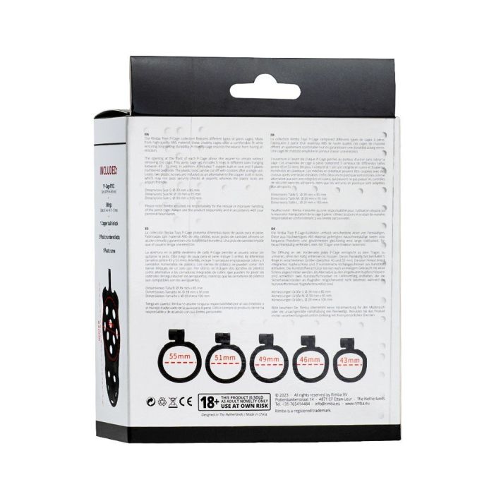De Rimba P-Cage collectie is een verzameling van verschillende soorten peniskooien. Deze kuisheidskooien zijn vervaardigd van hoogwaardig ABS materiaal en bieden een comfortabele pasvorm met een lange levensduur. Ze zijn ontworpen om de drager te beperken in het krijgen van een erectie.