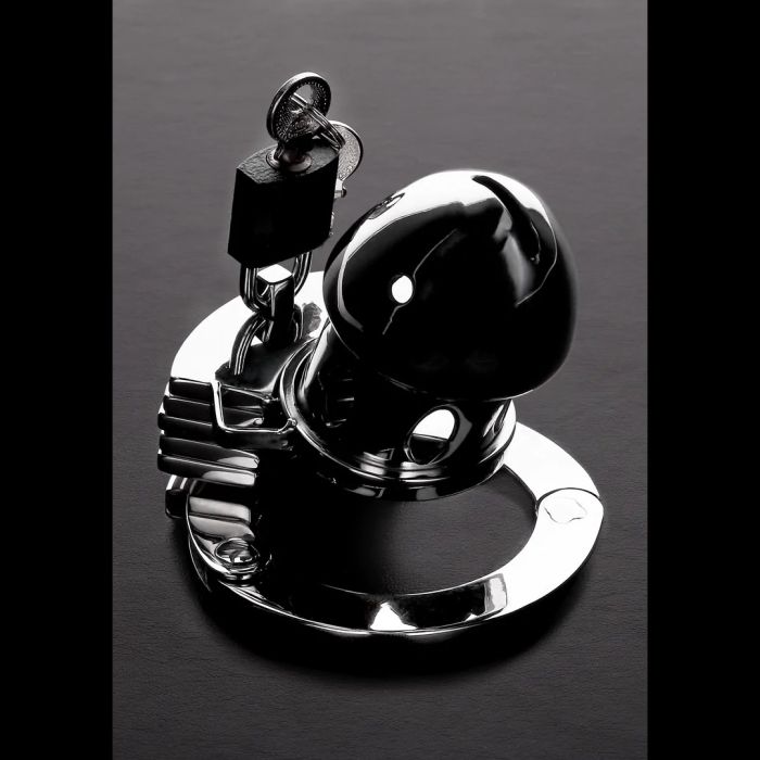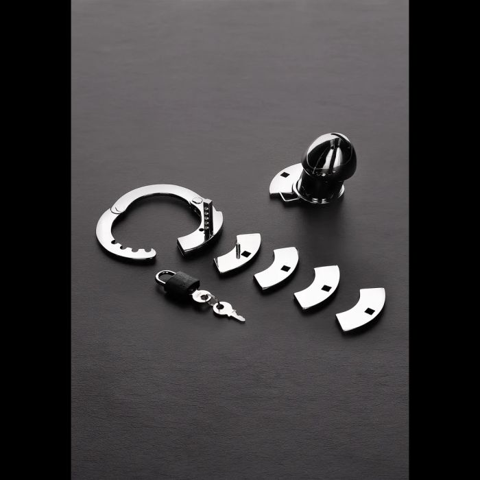 De Peniskooi The Prison Bird is speciaal ontworpen voor de avontuurlijke man die zijn grenzen wil verkennen. Dit innovatieve manchetachtige ontwerp is voorzien van een basisring die zich aanpast aan vier verschillende maten, zodat je altijd de perfecte pasvorm kunt vinden. Het unieke pin-in-gatplaatsysteem houdt zijn ballen veilig binnen de stevige roestvrijstalen ring, terwijl zijn slappe schacht gevangen blijft in de compacte metalen kooi. Met drie afstandhouders kun je de lengte van de kooi eenvoudig aanpassen, waardoor je de intensiteit van de ervaring kunt verhogen. De ademende constructie en het handige urineringsgat maken langdurig gebruik niet alleen comfortabel, maar ook praktisch. Met een kooilengte van 7 cm en een aanpasbare cockring grootte van 4 cm tot 5,5 cm, biedt deze kuisheidskooi de perfecte mix van veiligheid en plezier. Sluit hem op en laat hem genieten van de spanning van het wachten!