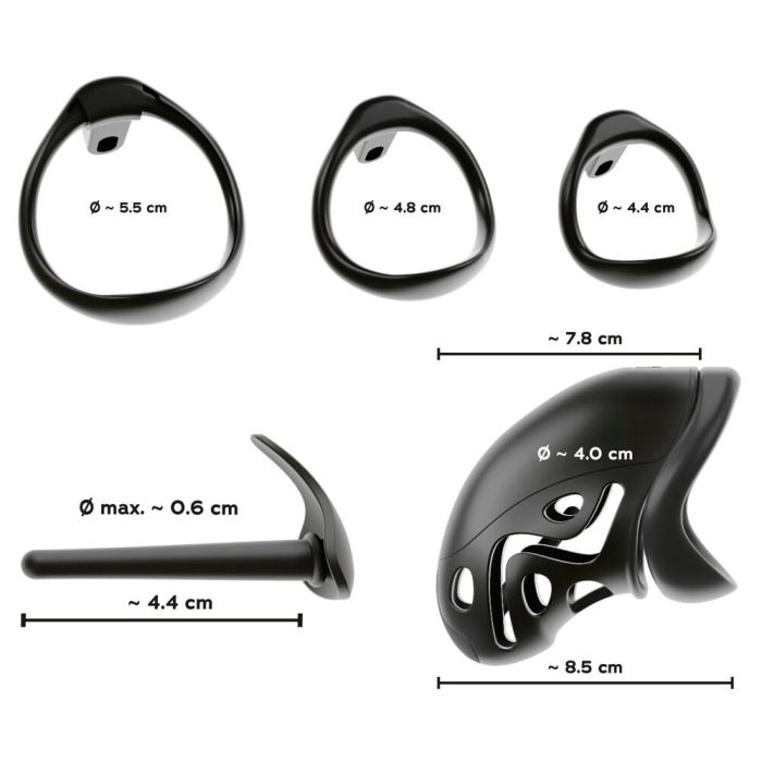 Deze innovatieve kooi van You2Toys is ontworpen om je een zorgeloze ervaring te bieden, zodat je elke minuut kunt genieten zonder enige afleiding. Met drie verwijderbare testikelringen kun je de pasvorm volledig aanpassen aan jouw unieke behoeften, wat zorgt voor een stabiele en klikvaste grip. De krachtige, flexibele siliconen dilatator voegt een spannende nieuwe dimensie toe aan urethrale stimulatie en kan ook zelfstandig worden gebruikt voor extra genot. Dankzij het slimme open ontwerp is deze peniskooi ideaal voor gebruik in de douche of het bad, terwijl de dilatator zorgt voor extra ruimte en comfort. Beveiligd met een metalen gleuf en sleutel, biedt deze peniskooi de mogelijkheid voor langdurige fixatie zonder in te boeten op genot. In de levering vind je alles wat je nodig hebt: een peniskooi, drie testikelringen, een dilatator, een gleuf en twee sleutels. Maak je klaar om een nieuwe dimensie van genot te ontdekken en ervaar de spannende mogelijkheden van kuisheid met deze unieke peniskooi!