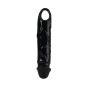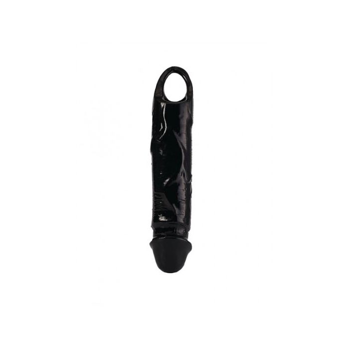 De grote variant van dit model laat je penis verdwijnen in een penisverlengende sleeve waardoor je in een handomdraai extra lengte en omvangt krijgt. De penissleeve beschikt over een super realistisch uiterlijk dat amper van een echte donkere penis te onderscheiden is. De schacht is voorzien van dikke aders die tevens voor extra stimulatie zorgen. De penissleeve is gemaakt van flexibel en rekbaar PVC materiaal dat perfect om de penis sluit. Door de balzak ring blijft de penissleeve zelfs in de heetste momenten perfect opzijn plek zitten. Door het ietwat stugge material is het aan te raden om de penissleeve voor gebruik flink in te smeren met glijmiddel. Na gebruik is de sleeve eenvoudig schoon te maken met water en zeep of een speciale toycleaner uit ons assortiment.