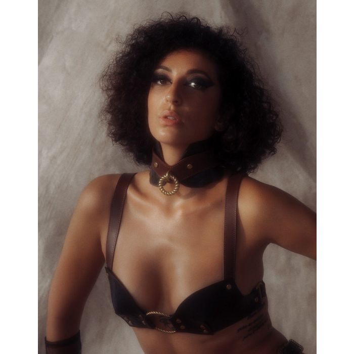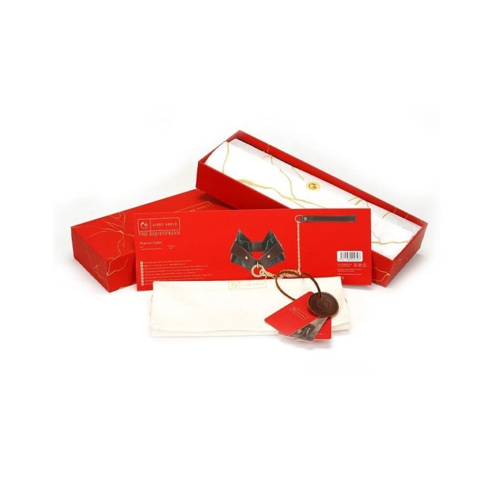 De luxe en functionaliteit van de handgemaakte halsband en riem van Liebe Seele is vervaardigd uit hoogwaardig rundleer in twee prachtige kleuren en texturen. Deze unieke set is ontworpen met een dubbele laag voor extra stevigheid, terwijl de voering van zacht lamsleer zorgt voor ongeëvenaard comfort voor jouw sub. De verstelbare halsband, geschikt voor een omtrek van 36,5 tot 45 cm, is niet alleen praktisch, maar ook een stijlvol statement met de kenmerkende gouden accenten van The Equestrian. Deze collectie, geïnspireerd op de kunst van het paardrijden, combineert gedefinieerde lijnen en robuuste metalen elementen, waardoor zowel functionaliteit als elegantie worden gegarandeerd. Laat je betoveren door de magie van de paardenwereld en de mystiek van rollenspel, en ervaar de thema's van gehoorzaamheid, discipline en karakterisering die deze bijzondere set te bieden heeft.