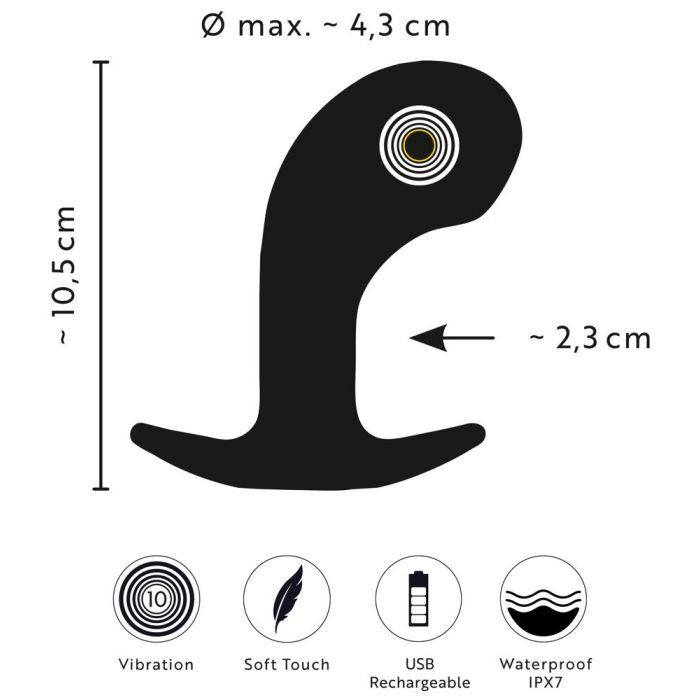 Der Prostata-Profi ist ein innovativer Analvibrator, der speziell für die gezielte Stimulation der Prostata entwickelt wurde. Mit seinem ideal gebogenen Design und dem extragroßen Massagekopf erreicht er mühelos die empfindlichen Bereiche, die für ein intensives Vergnügen sorgen. Der breite, handliche Stopper gewährleistet eine sichere Anwendung, sodass der Plug nicht versehentlich hineingerutscht werden kann. Hergestellt aus hochwertigem Silikon, bietet der Prostata-Profi eine seidig weiche Oberfläche, die das Einführen erleichtert und ein angenehmes Tragegefühl vermittelt. Mit einer Gesamtlänge von 10,5 cm und einer Einführlänge von 9,5 cm sowie einem Durchmesser von 2,3 cm bis 4,3 cm ist er ideal dimensioniert für sowohl Anfänger als auch erfahrene Nutzer.