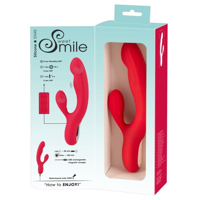 De Thumping Rabbit vibrator van Sweet Smile is een krachtige stimulator die zowel van binnen als van buiten plezier biedt. Met zijn kloppende, pulserende schacht en vibrerende top zorgt hij voor diepe vaginale stimulatie, terwijl de vibrerende arm de clitoris intensief verwent. Deze dubbele stimulatie is perfect gecoördineerd voor fantastische climaxen.