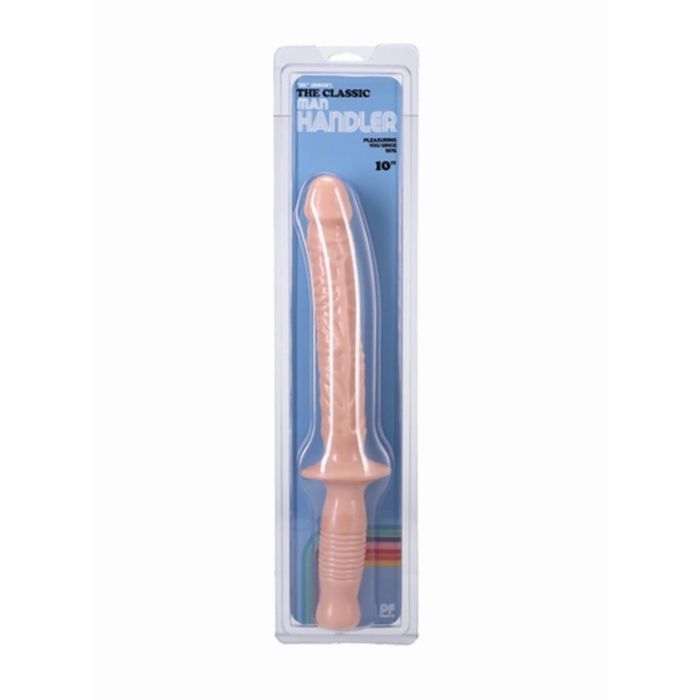 The Man Handler van Doc Johnson is een indrukwekkende dildo van maar liefst 37 cm en speciaal ontworpen voor de ervaren gebruiker die op zoek is naar iets unieks. De klassiek gevormde, geaderde schacht biedt een ongeëvenaarde stimulatie die perfect aansluit op jouw diepste verlangens. Dankzij het innovatieve politie-batonstijl handvat heb je optimale grip en controle, waardoor je elke beweging precies kunt afstemmen op wat jij wilt. Gemaakt van phthalate-vrije, lichaamsveilige PVC, is deze dildo niet alleen veilig voor jouw lichaam, maar ook verkrijgbaar in stijlvolle kleuren zoals beige en zwart. Kies de kleur die het beste bij jouw persoonlijke stijl past en voeg een extra dimensie toe aan je speeltijd. Of je nu verlangt naar een intense ervaring of gewoon wat extra opwinding wilt, The Man Handler is de ideale keuze voor een onvergetelijke belevenis die je keer op keer wilt herbeleven!