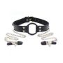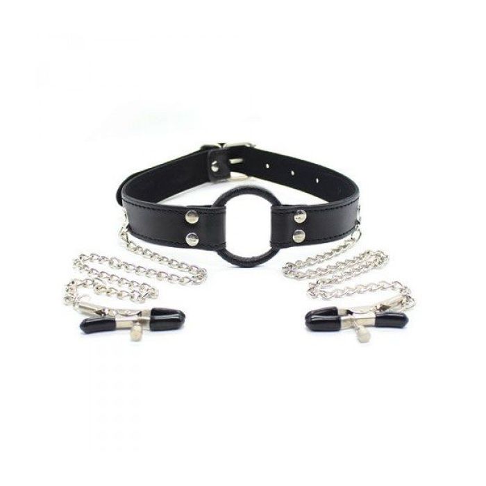 Voor een intensere beleving van BDSM kies je voor deze ring gag met tepelklemmen. Met deze geweldige toy kun je pijn ervaren en de controle volledig uit handen geven. De ring gag is verstelbaar met een riempje, zodat je altijd de perfecte pasvorm kunt creëren. De tepelklemmen zijn stevig bevestigd aan een robuuste ketting, wat zorgt voor een stoere uitstraling. Bovendien zijn de tepelklemmen voorzien van siliconen bescherm noppen, waardoor ze comfortabel en veilig zijn in gebruik. Met deze ring gag met tepelklemmen kun je jouw BDSM-spel naar een hoger niveau tillen en genieten van een intense en opwindende ervaring.
