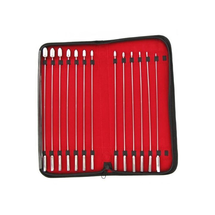 Deze spannende 13-Delige Dilator Set is echt een must-have voor iedereen die houdt van een spannende en unieke ervaring. De set bevat een reeks van acht dilators, allemaal ontworpen in de populaire Rosebud-stijl, die perfect zijn voor het ontdekken van urethrale stimulatie. Gemaakt van hoogwaardig chirurgisch metaal, zijn deze dilators niet alleen duurzaam, maar ook veilig in gebruik. Ze worden geleverd in een stijlvolle zwarte leren opberghoes, wat niet alleen zorgt voor een luxe uitstraling, maar ook voor een gemakkelijke en discrete opslag. Met een totale lengte van ongeveer 30 cm en koppen die variëren van 10 mm tot 25 mm in diameter, bieden deze dilators een scala aan mogelijkheden voor zowel beginners als ervaren gebruikers. De breedte varieert van 4 mm tot 12 mm, waardoor je de perfecte maat kunt kiezen voor jouw persoonlijke voorkeur en comfort. Of je nu je grenzen wilt verleggen of gewoon wilt genieten van een nieuwe sensatie, deze set is de ideale keuze voor een onvergetelijke ervaring.