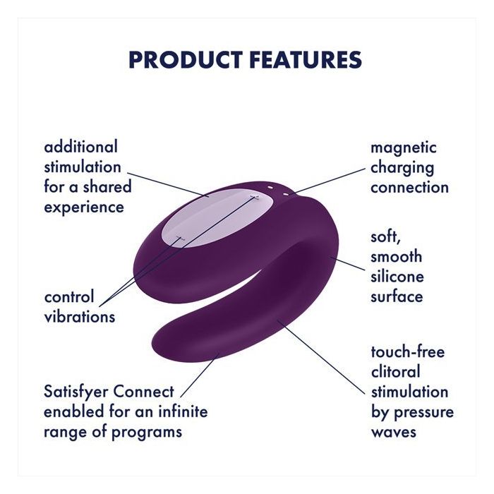 Maak kennis met de Satisfyer Double Joy App-Connect. Deze paarse partner vibrator verwend jullie beiden terwijl jullie samen zijn maar is ook solo te gebruiken terwijl je partner aan de andere kant van het land is. De nieuwe Satisfyer Connenct-App biedt jullie namelijk tal van mogelijkheden om apart maar toch samen te zijn. Daarnaast is het ook nog eens geheel gratis te downloaden op elk Android of Apple iOs device. De app is zelfs te gebruiken in combinatie met je Apple Watch. Elke maand verrast de app jullie met nieuwe opwindende functies zodat jouw nieuwste toy nooit saai zal worden.